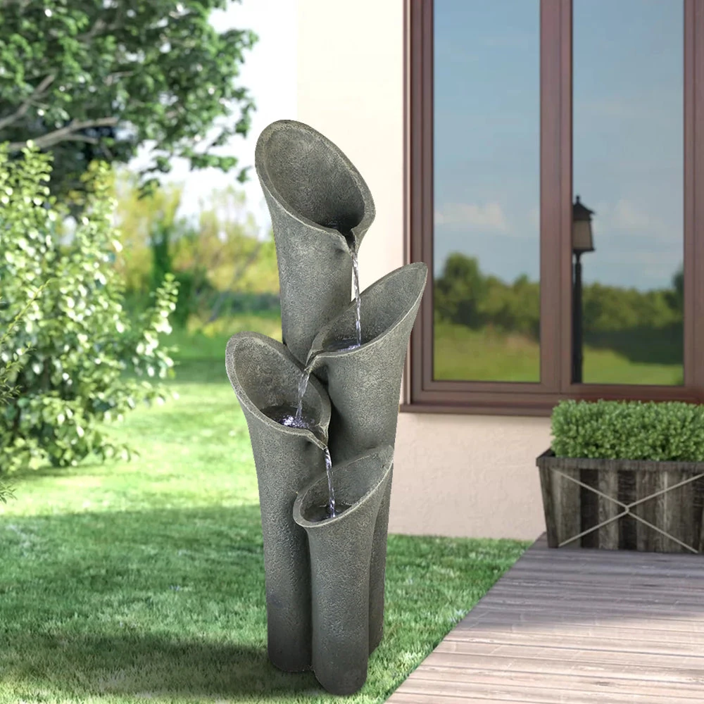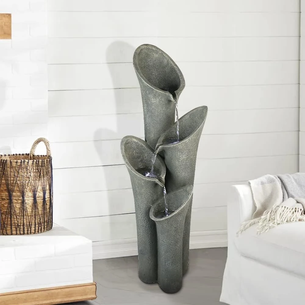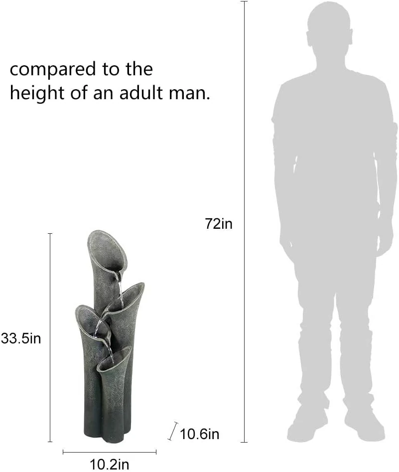 33.5″H-Bell 4-Tier Cascading Floor Rock Water Outdoor Fountain with LED Lights