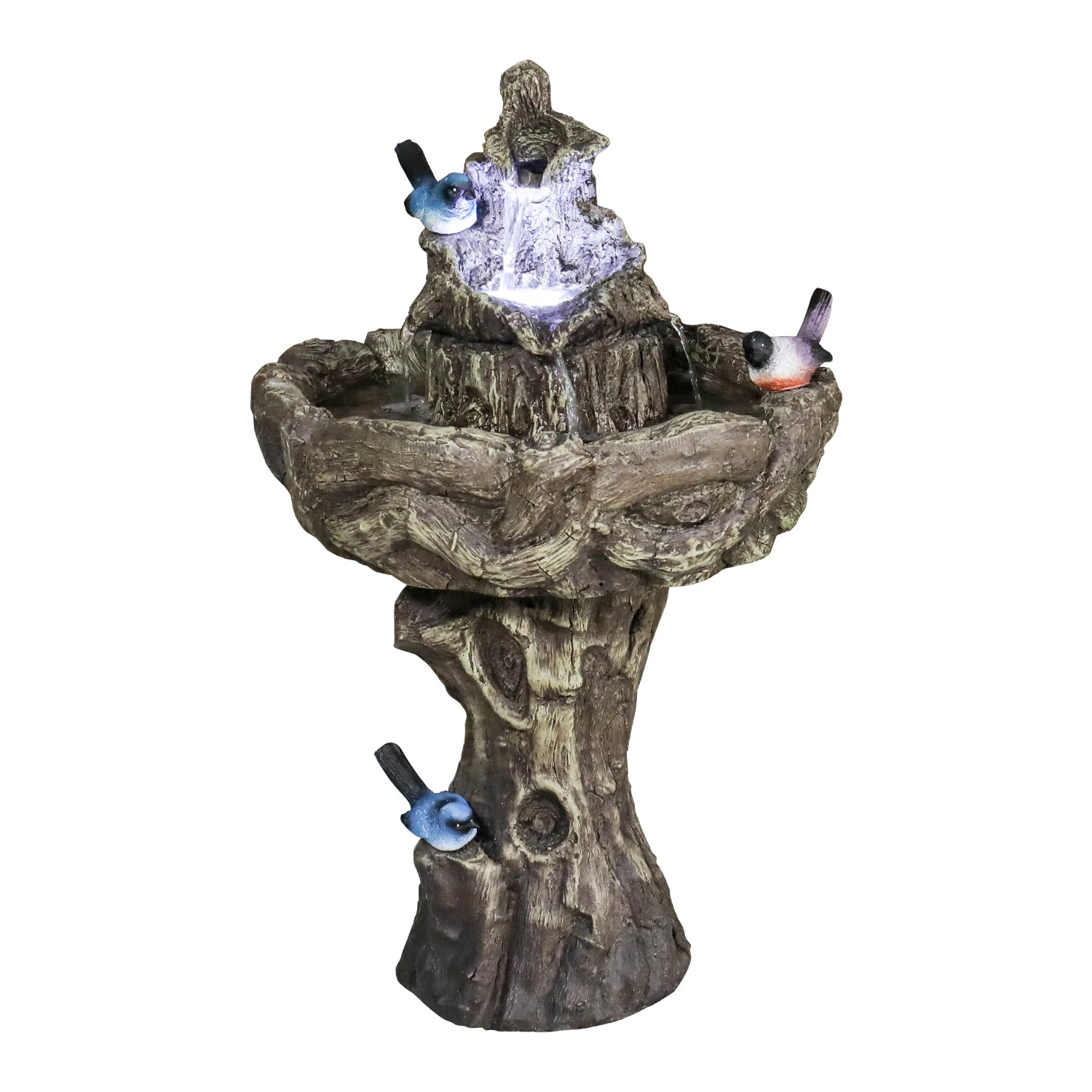 26.7”H 2-Tiered Birdbath Fountain with Three Birds