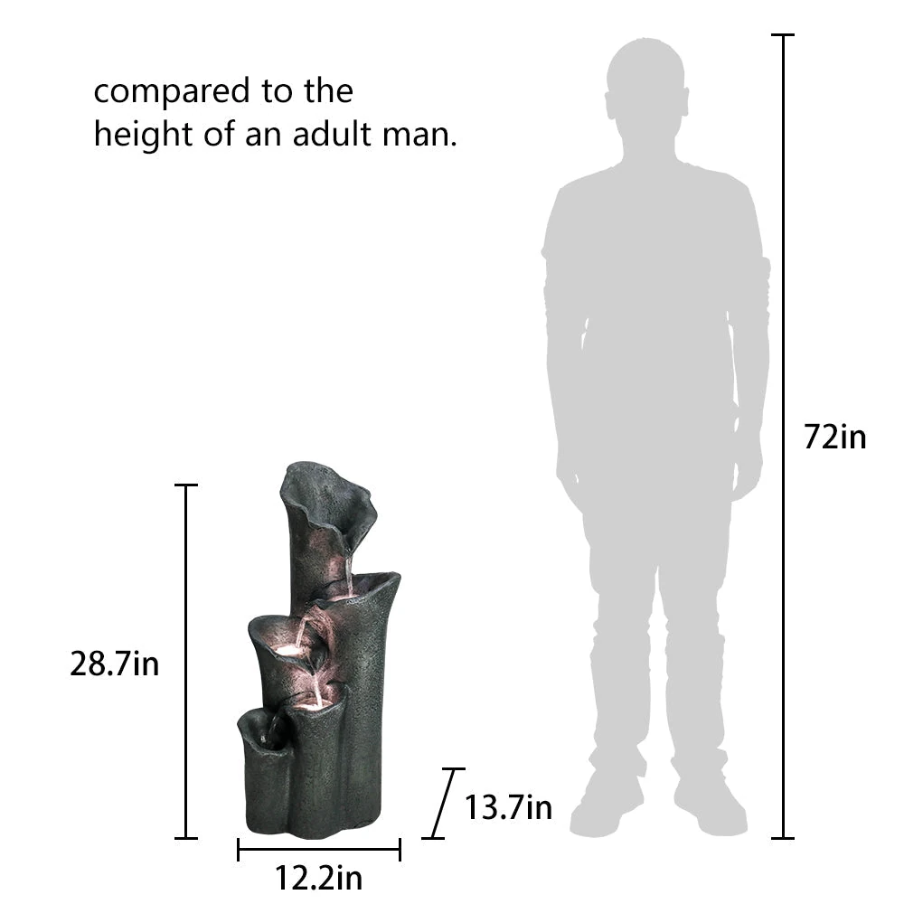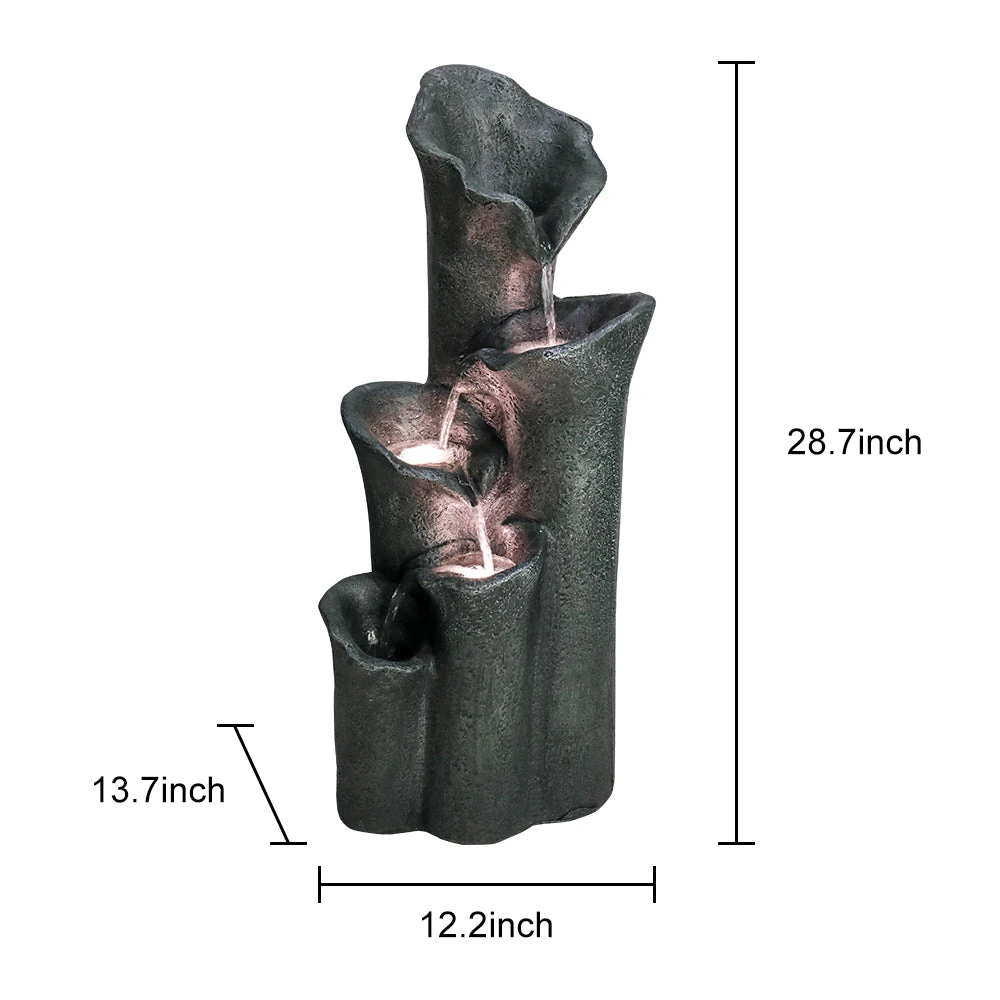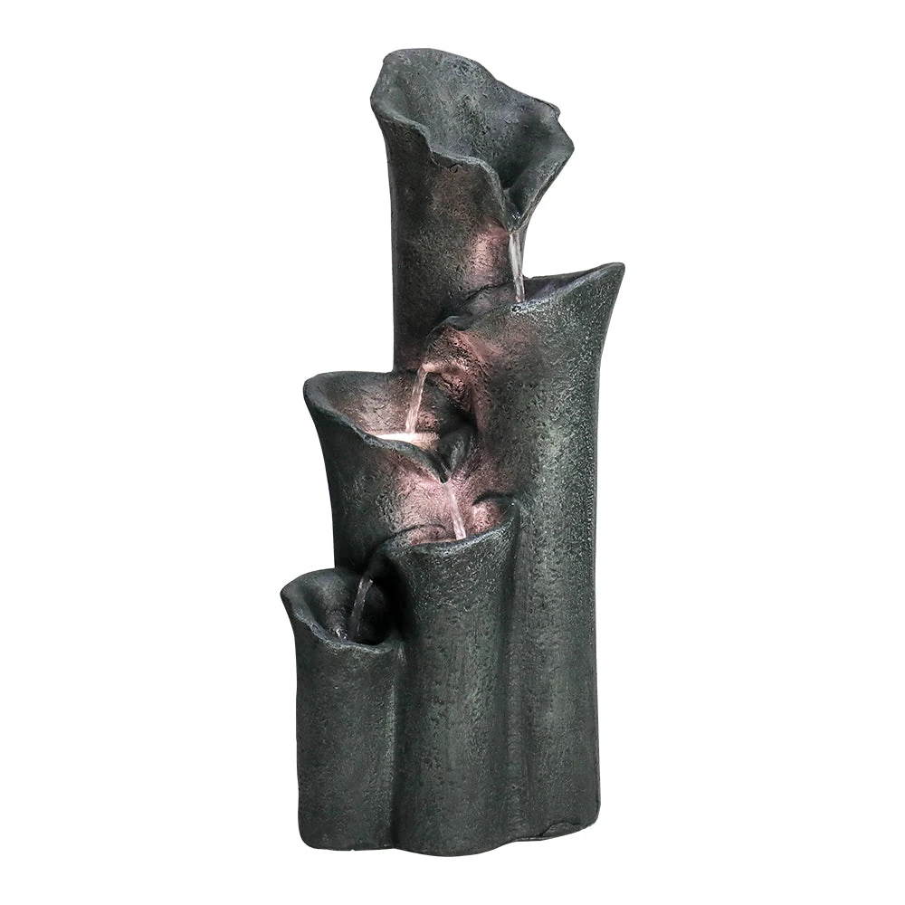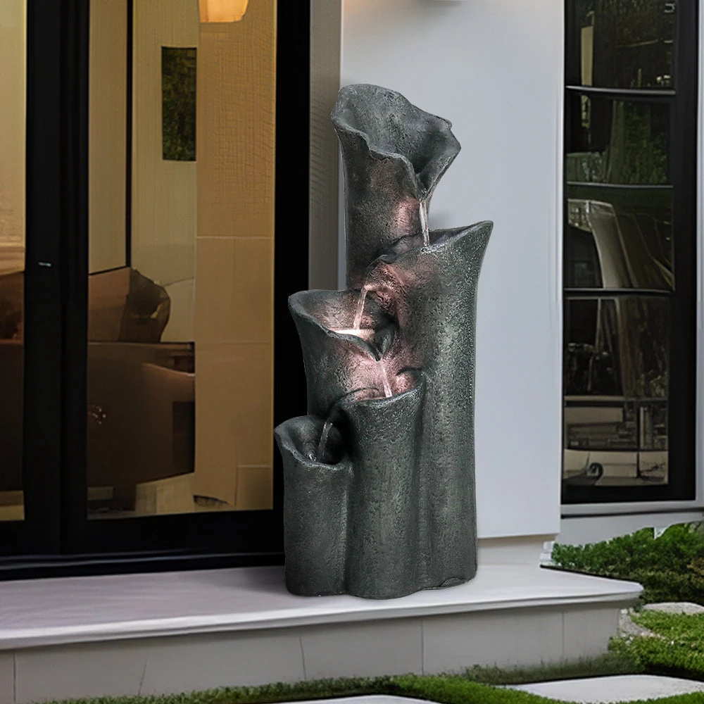 Elevate your outdoor sanctuary with the 5-Tiered Lotus Leaf Modeling Outdoor Fountain with LED Lights. This stunning centerpiece features a serene, multi-tiered design inspired by lotus leaves, creating a gentle, cascading water flow. Integrated energy-efficient LED lights illuminate the water display at night, transforming your garden into a magical retreat. Crafted from durable, weather-resistant materials, this fountain combines artistic beauty with lasting performance for a truly tranquil am