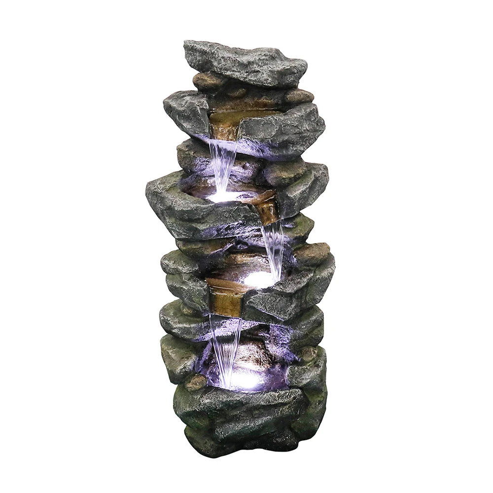 40in 4-Tiered Rock Outdoor Fountain with White LED Lights
