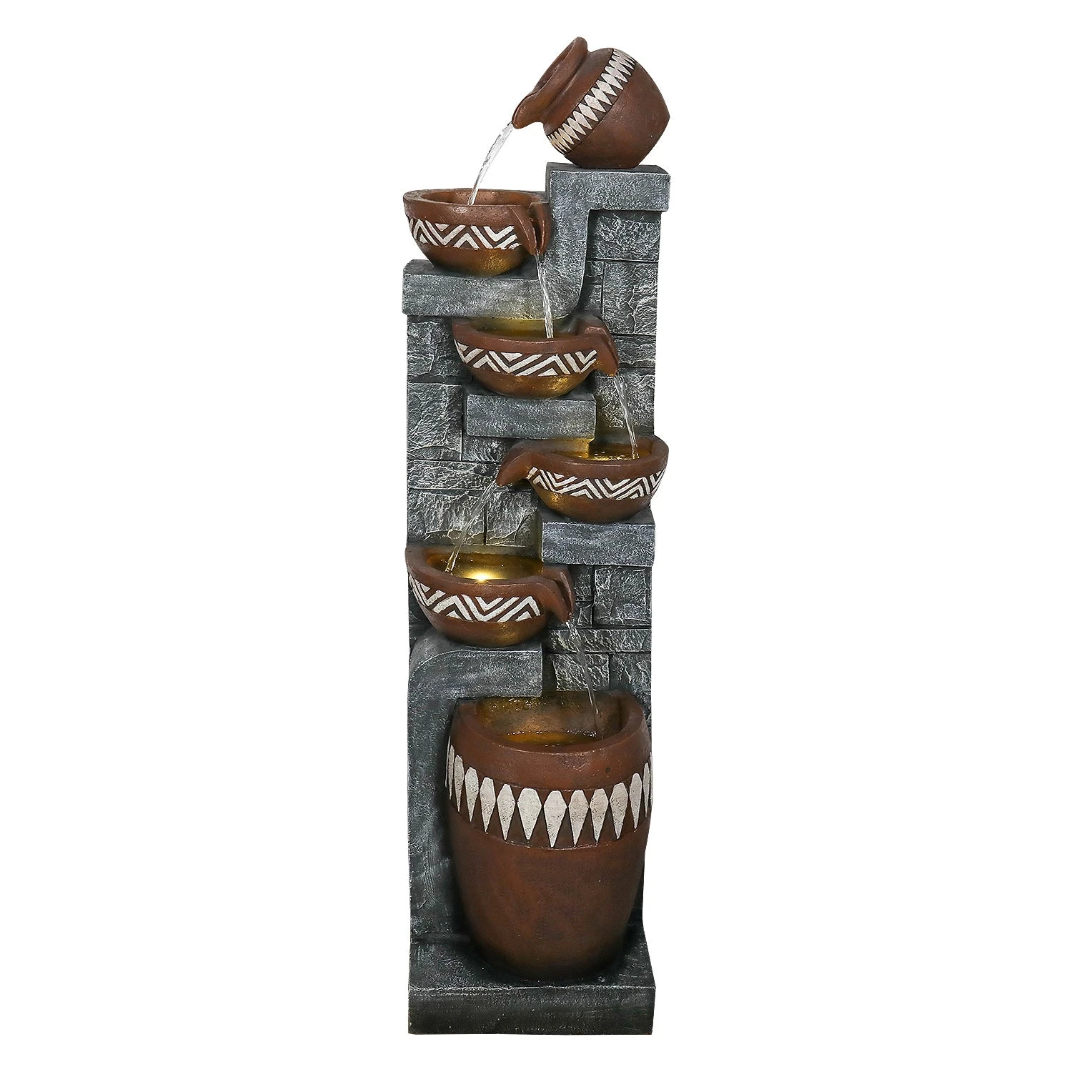 56.6in High Outdoor Indoor Water Fountain, 6-Tiered Poly-Resin Waterfall Fountain with LED Lights