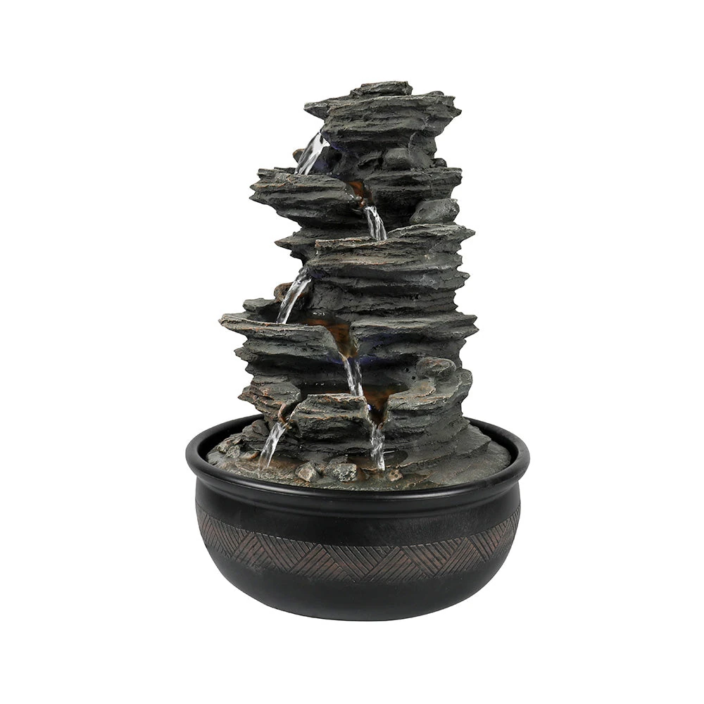 6-Tiered Resin Stacked Rock Indoor Tabletop Fountain-15.7″H