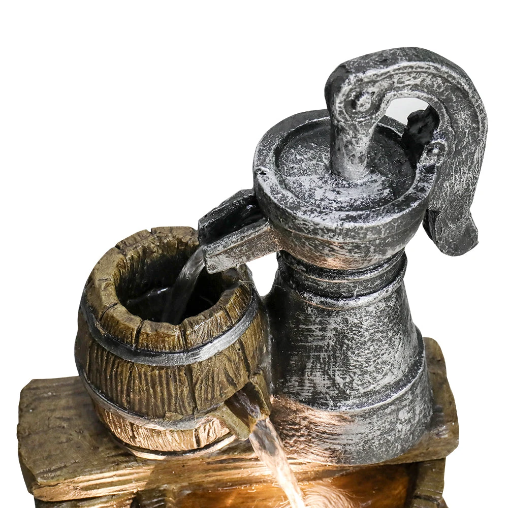 - Authentic Retro Barrel Aesthetic: Constructed from high-quality, UV-resistant polyresin and finished with meticulous stone-look texturing, the fountain replicates the warm, inviting appeal of a classic wooden barrel. This durable material will not fade, crack, or warp under sun exposure, preserving its beauty season after season.