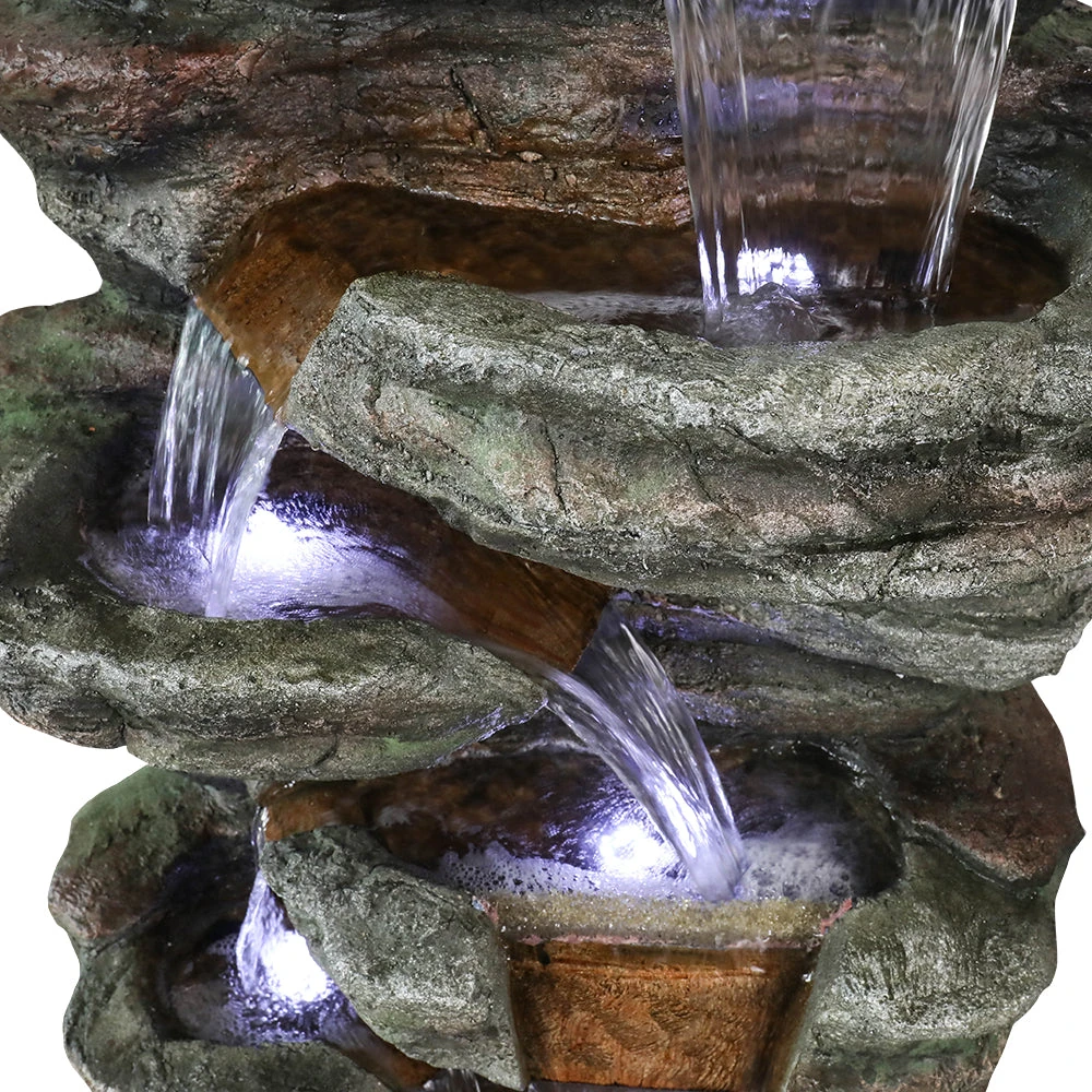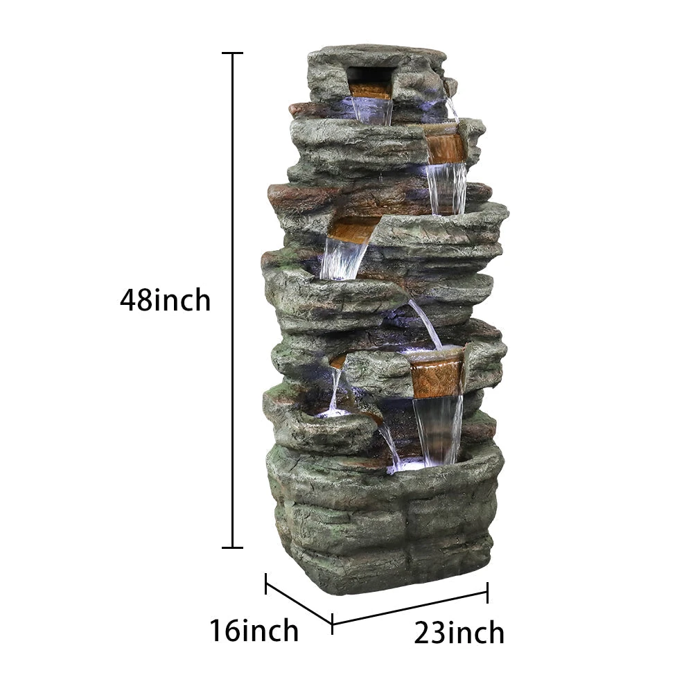 48″ H 7-Tiered Stacked Shale Outdoor Fountain with LED Lights