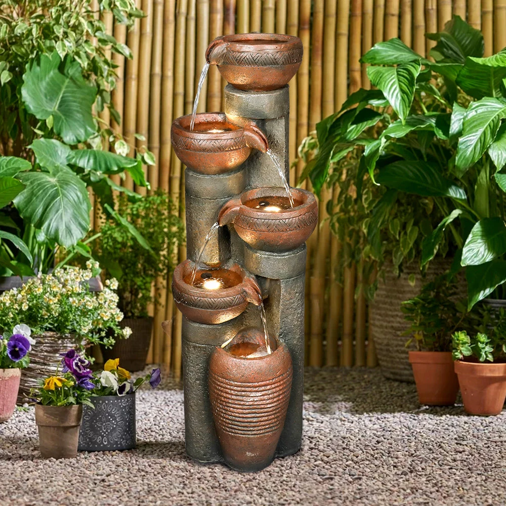 Imagine the gentle, soothing sound of trickling water, the soft glow of ambient lighting, and the captivating visual centerpiece that becomes the heart of your outdoor living space. Our 39.7”H 5-Tiered Garden Outdoor Fountain with Warm LED Light is meticulously designed to deliver this multisensory experience, transforming ordinary backyards, patios, and gardens into extraordinary retreats. More than just a decorative item, this fountain is an investment in tranquility, beauty, and the art of outdoor living. As a new pinnacle of our collection, it combines classic tiered design with modern functionality, creating an enduring focal point that enhances your property’s value and your daily quality of life.